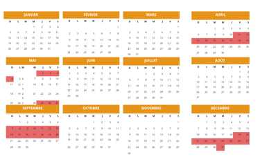 En rouge les jours de fermeture de la pension pas d'accueil possible sur ces dates.